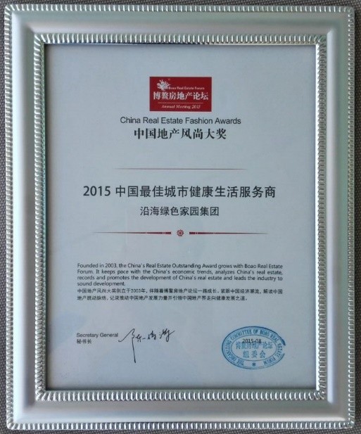 據組委會介紹,沿海綠色家園集團在過去的一年里,在房地產輕資產轉型的路上繼續開拓進取,旗下北京、上海、重慶、沈陽、大連、佛山等地的項目,延續2014年的良好勢頭,在2015年紛紛開出亮麗成績單。更為突出的是,沿海綠色家園集團自2014年將定位升級為中國城市健康生活服務商以后,將業務領域從健康地產進一步拓展到健康生活服務領域,整合醫療、食品和家居設備等健康領域的伙伴企業資源,為業主和消費者提供豐富的健康居家服務,同時積極開展健康文化活動,在營造健康生活社區方面取得矚目成績,并逐漸形成一套建設健康社區的方法體系,因此組委會授予沿海集團此項殊榮。